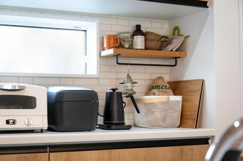 キッチンは物があふれやすく、生活感も出やすいのが悩みどころ。しかしこの「物が多い」を上手く活用すれば、生活感がインテリアの一部に大変身!ウォールシェルフを取り付けるだけで、まるでカフェのような非日常的な空間づくりも簡単にできます。新築でキッチンのデザインを考えている方はぜひ参考にしてみてください。