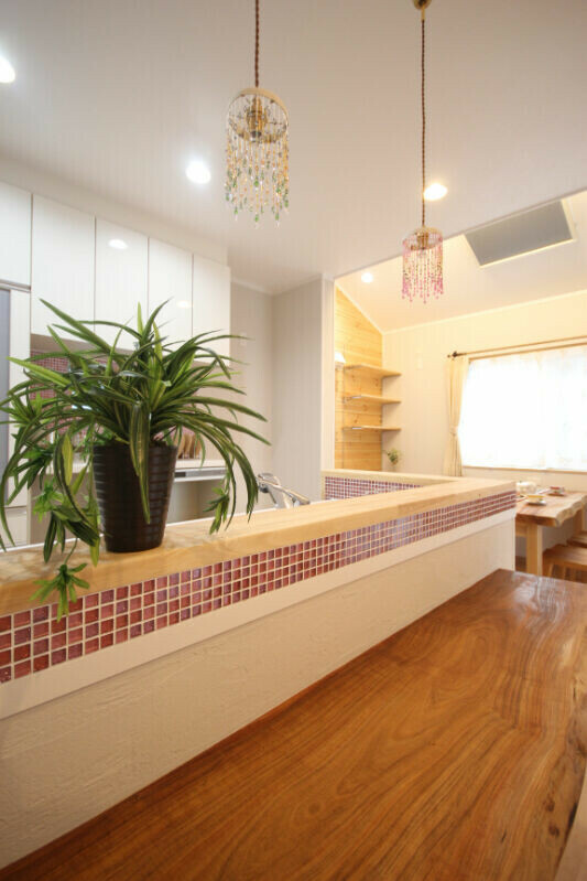 対面キッチンカウンターのおしゃれなニッチやモザイクタイル【施工事例】