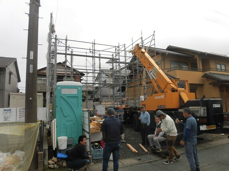 ほっと住まいるでは、いつも建て方作業を2日間にわたって行っています。