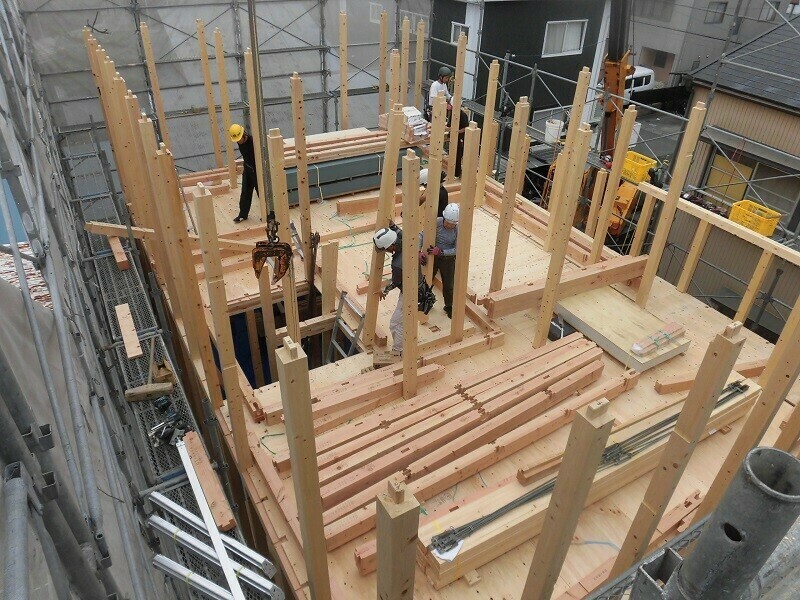 1階の柱→1階の梁→2階の床→2階の柱・・・と進んでいくと、今度は2階の梁。