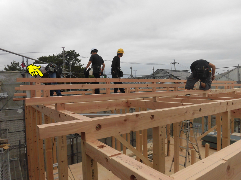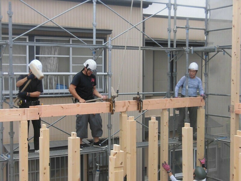 慣れないうちは梁の上を歩くのも結構怖いものですが、経験を積んだ大工さんにとってそれはお手の物。