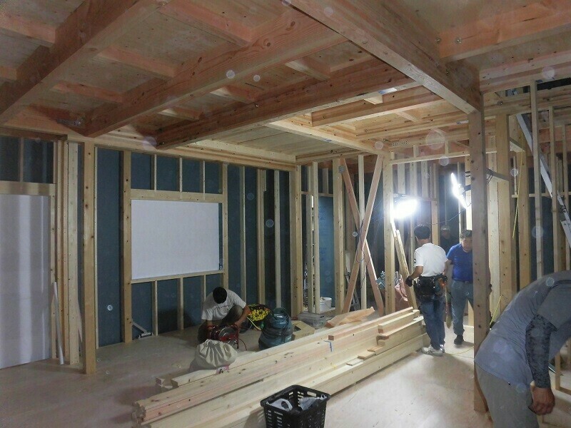 この日を過ぎれば残りの木工事の工程は基本的に大工さんが一人で行うことになるので、残りの時間は残りの時間で大工さんが大勢集まっているうちに進められるところまで作業を進めます。