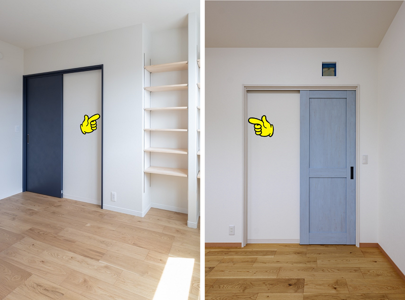 コチラの画像・・・左の建具枠は建具同色、右の建具枠はホワイトとなっています。