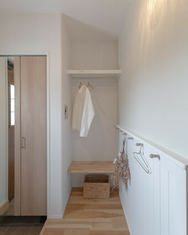 そこでおすすめなのが、玄関で靴を脱いだ後の玄関ホールに「マッドルーム風」のコーナーを設けること。