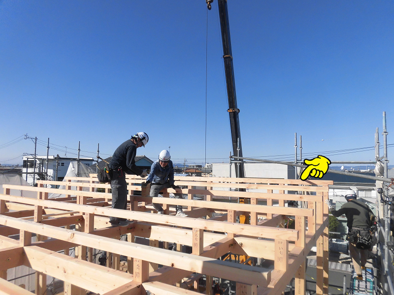 慣れないうちは梁の上を歩くのも結構怖いものですが、経験を積んだ大工さんにとってそれはお手の物。