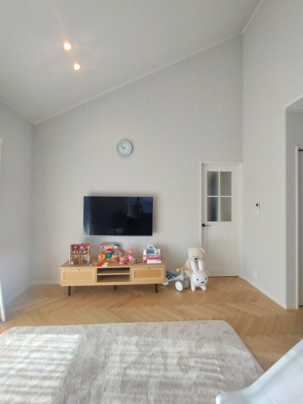 テレビ台にはお子さんのおもちゃが、まるでインテリアの一部のように置かれています。
