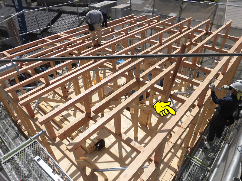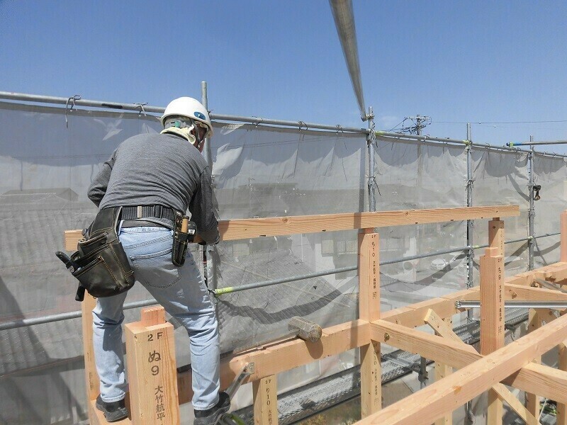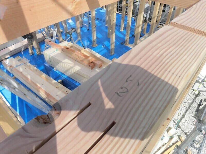 慣れないうちは梁の上を歩くのも結構怖いものですが、経験を積んだ大工さんにとってそれはお手の物。