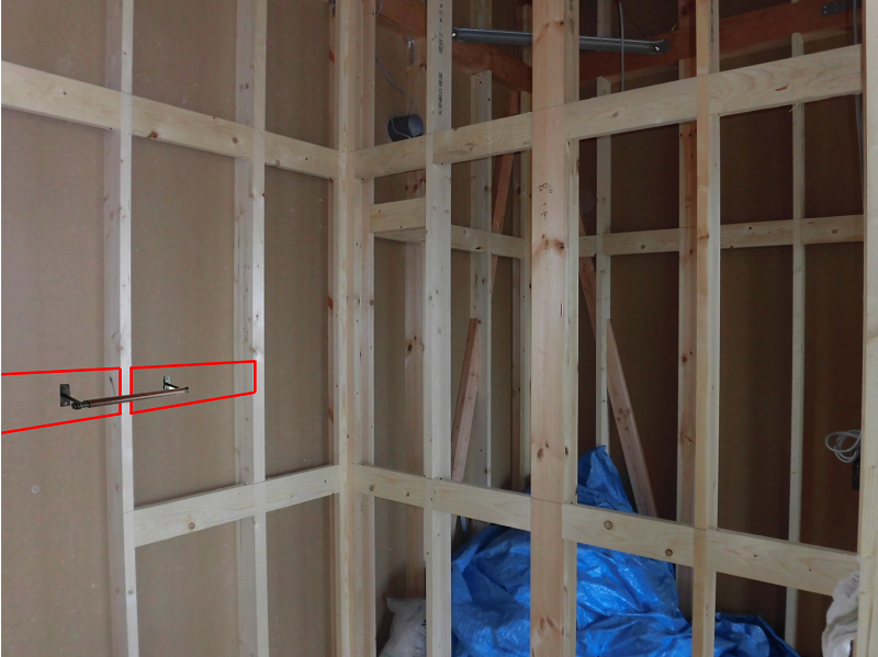 ただ・・・問題なのはタオル掛けなどの横方向の下地を必要とするケースで、構造上必要な柱や間柱と違って、指示をしなければ横方向の下地は入りません。