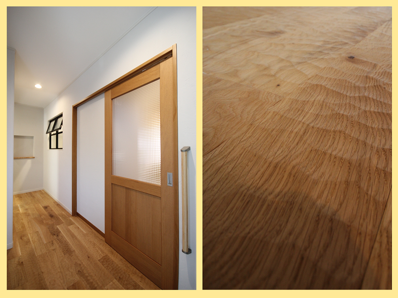 踏み心地の良さを文章で伝えるのはなかなか難しいのですが、普通の無垢床材に物足りなさを感じている方がいらっしゃれば、表面に加工が施されたこれらの床材を検討してみるのもイイかもしれませんね。
