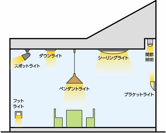 参考までに、ブラケット以外の照明器具の名称も、下のイラストでご紹介しておきますね。