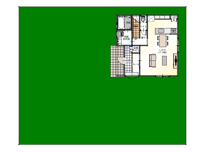 弊社では掛川市仁藤に自社物件として約50坪の土地を販売用に所有しているのですが、試しに作成した間取りをその土地に配置してみます。