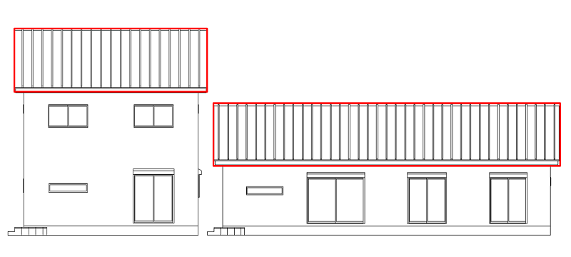 上記の間取りを比べてみても、部屋の数は同じ、窓の数だってそう変わらない、階段だって無いのに何がそんなに高くなっちゃうの!?って疑問が浮かぶかと思いますが、下の図にその答えがあります。