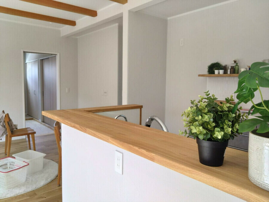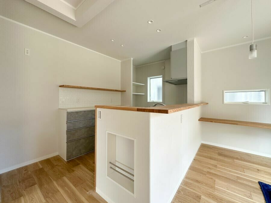 見学に来ていただいたお客様に、ただ殺風景なお家を見ていただくよりもちょっとした家具や小物が飾られている室内のほうが、見学しててもより生活のイメージがしやすいのではないでしょうか。