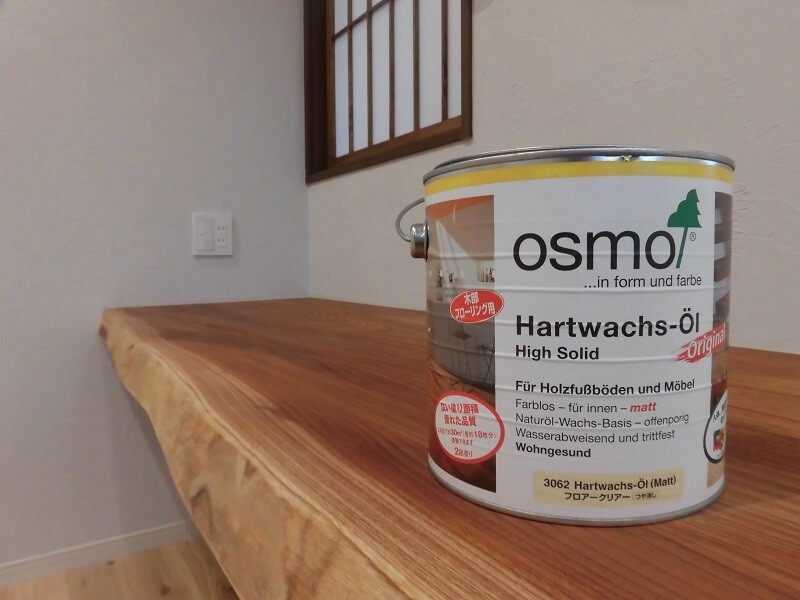 それを防ぎ、床をいつまでもキレイに保とうとすればオスモカラーなどのオイルを定期的に塗ってあげる必要があります。