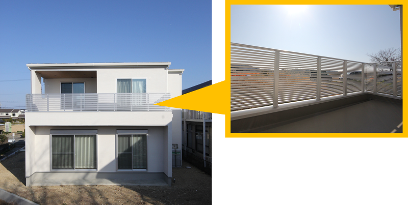 以前に施工したコチラのM様邸は約7帖の広々バルコニーを有しています。