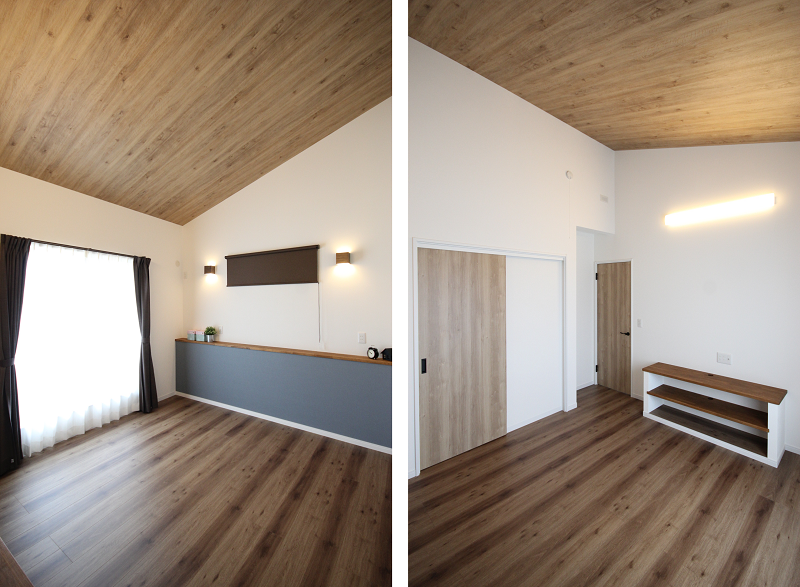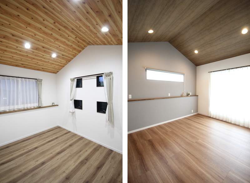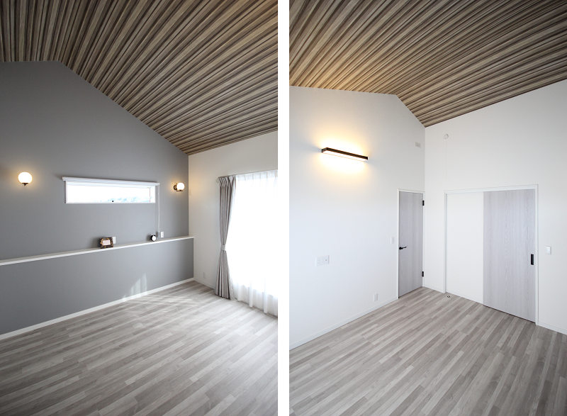 屋根形状を活かした勾配天井は、開放感を生みつつ、オシャレも演出できて人気があります。