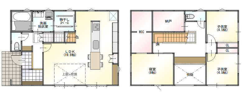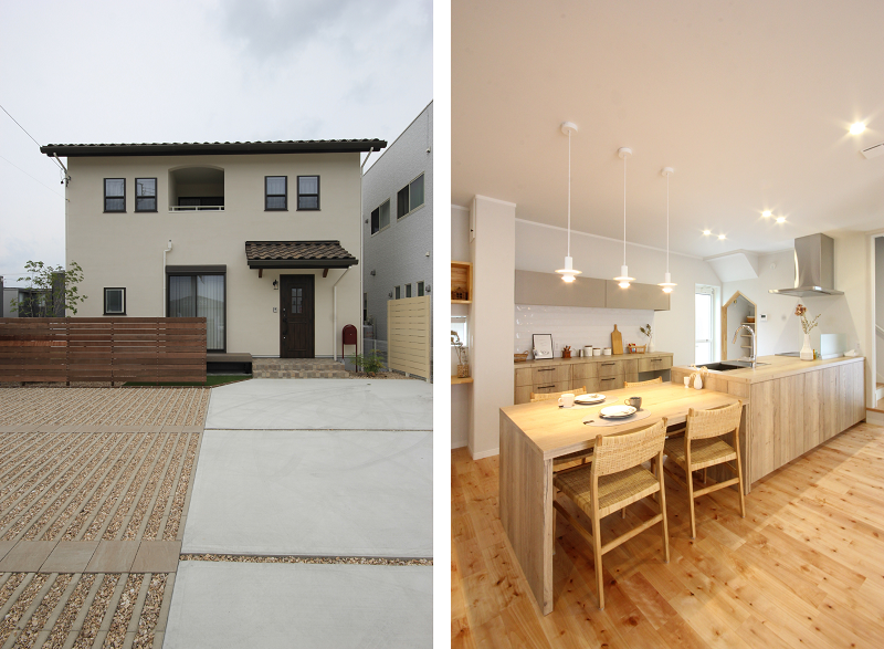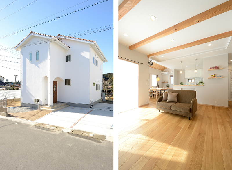 この点、弊社のモデルハウスは今までの施工経験から、実際に単世帯のお客様が不自由なく暮らせているサイズの中で間取りを考え、シラス壁や無垢床材などの好評だった自然素材、アーチ垂れ壁やカウンターなどの人気の高かった造作を選び抜きながらそれを採り入れて建てています。