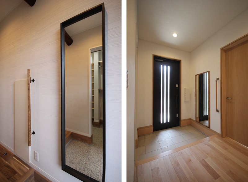 姿見はただ置いておくだけのものも商品として存在しますが、玄関ではそれは邪魔になりそうなので、出来れば壁付にしたいという方が多いです。