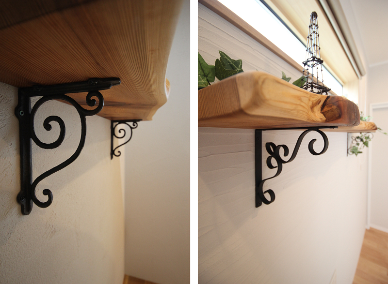 また、下2枚の写真の棚受けは塗り壁施工後に取付けたものです。