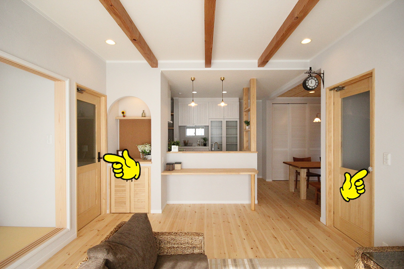 扉は両方ともウッドワン製のもので、左の黒いドアノブが正規品となります。