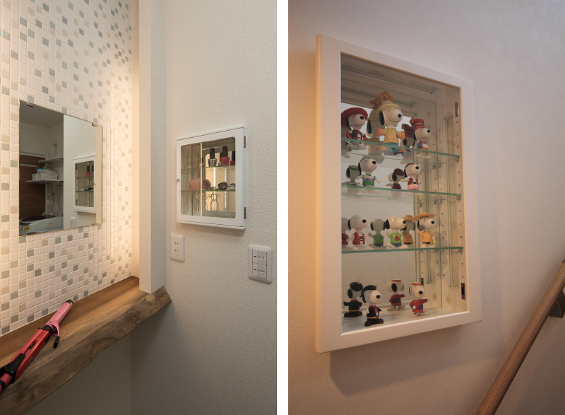 そもそもは置き型の商品でしたが、ちょうど壁の厚みにピッタリだったので、大工さんに加工してもらいながら壁に埋め込みました。