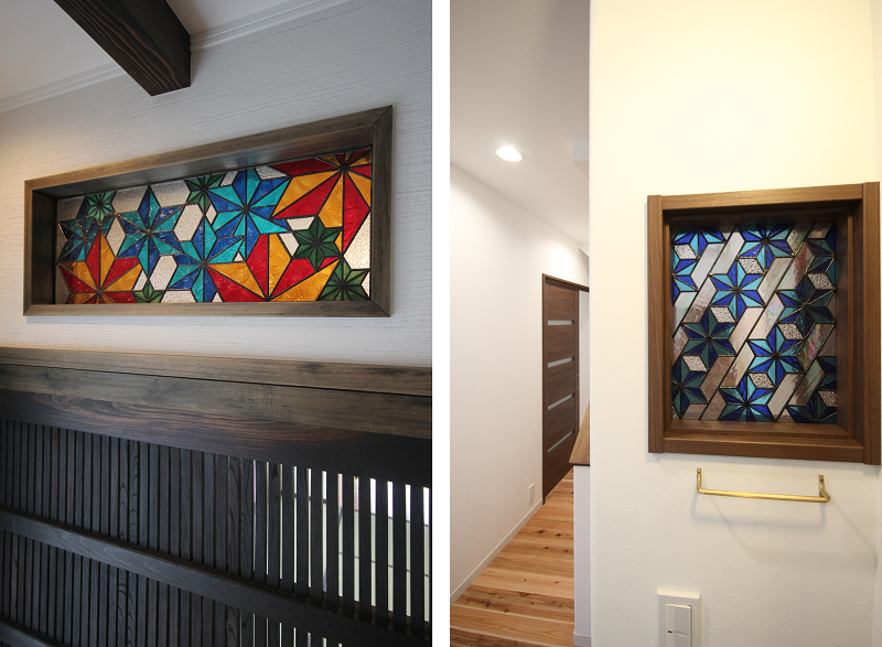 このステンドグラスは両方とも市販のものではなく、新築工事に合わせて同時進行で製作したものです。