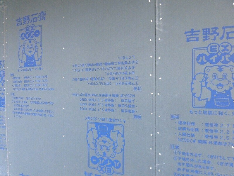 一時的に濡れてしまうのは仕方が無いにしても、雨に濡れてしまう状況を1週間も2週間も放置しておくのはやはり良くないので、2日目は耐力面材となる『EXハイパー』を張る作業を行うようにしています。