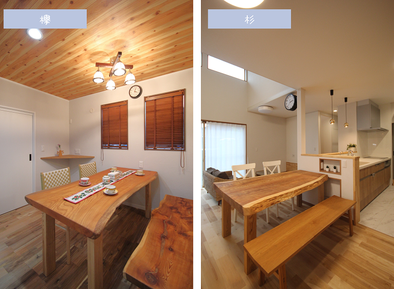 無垢の床材に西南桜やカバザクラ、アカシアにタモといった色んな種類があるように、一枚板にもいろんな樹種があります。