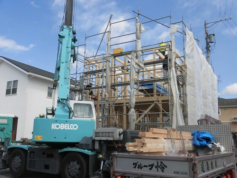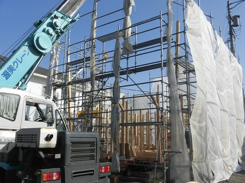 ほっと住まいるでは通常、建て方の作業を2日掛かりで行っています。