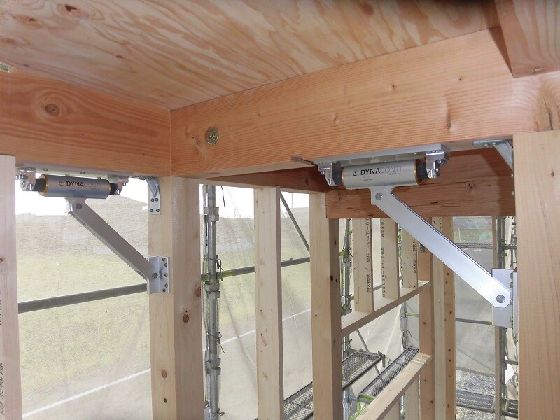 先日上棟した掛川市仁藤の建売住宅・・・上棟日に躯体を組み上げていく一方で、制振ダンパー『ダイナコンティ』の取付作業も並行して行っていました。