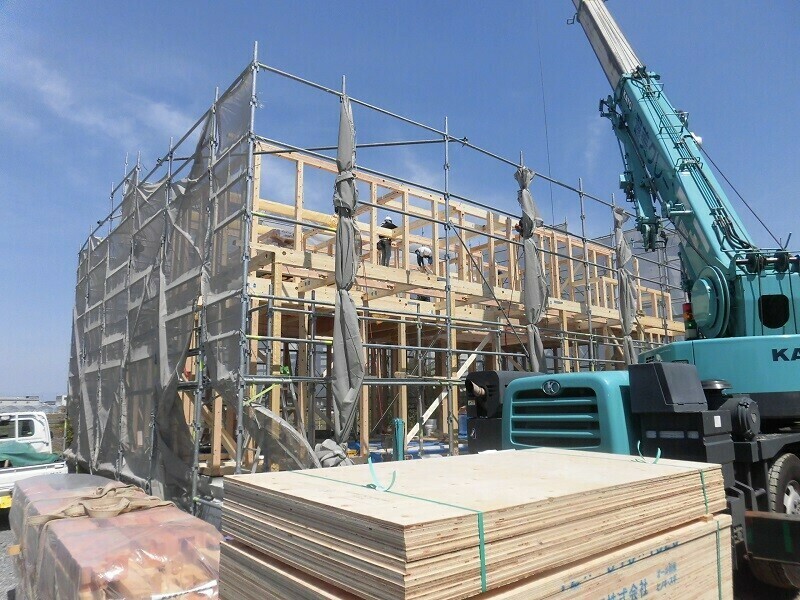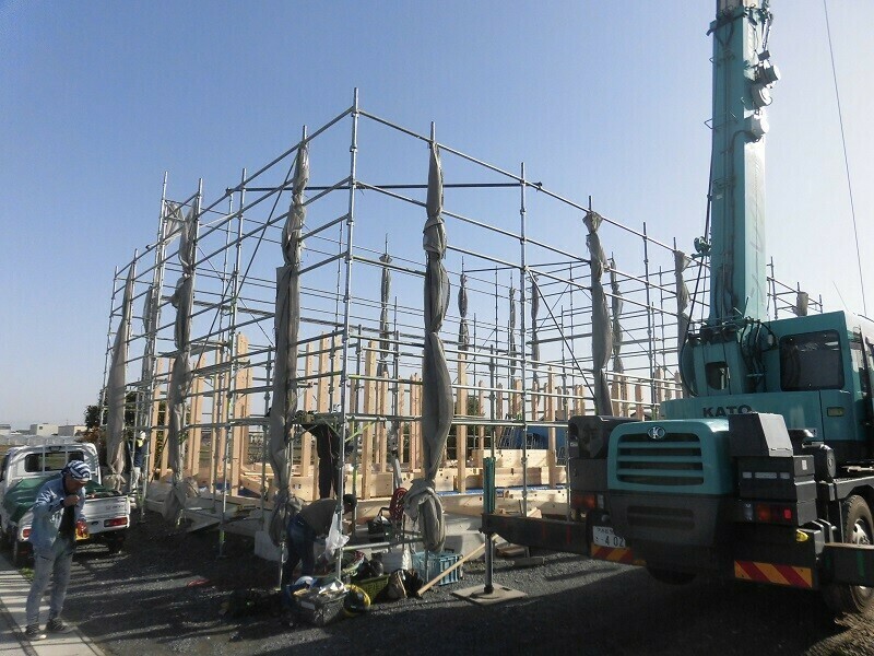 ほっと住まいるでは通常、建て方の作業を2日掛かりで行っています。
