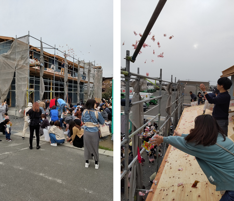 このところ、上棟でお餅を投げるお家はめっきり少なくなっていました。