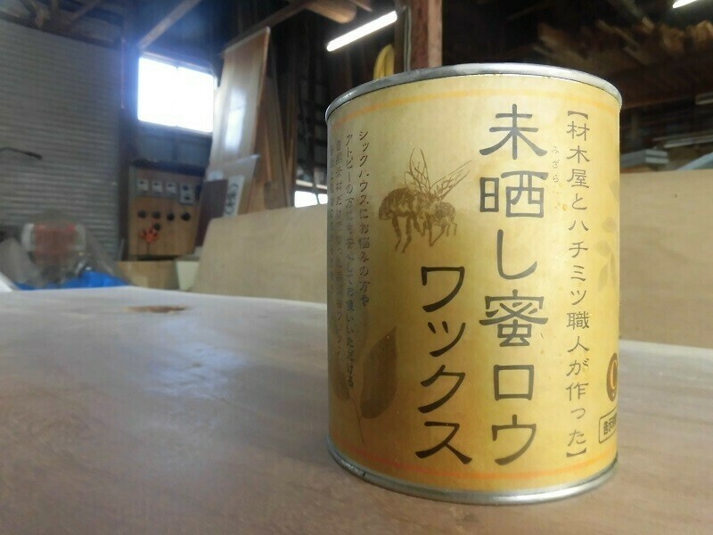ひと通りの研磨作業が完了したら、天板の加工は最終段階・・・『未ざらし蜜ロウワックス』で表面を塗装します。