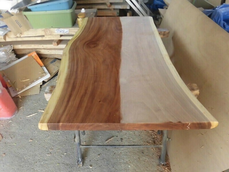 モンキーポッドの一枚板をダイニングテーブルに加工しました