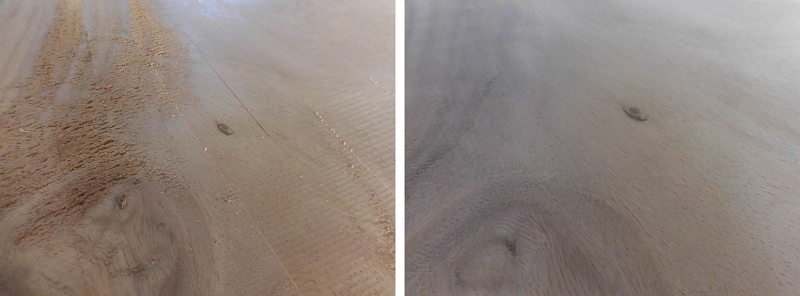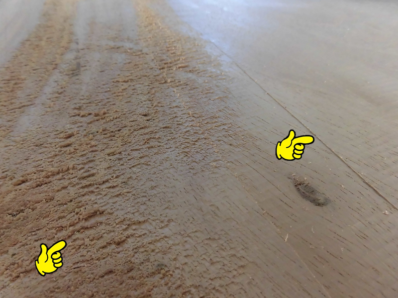 ただ、その作業を行った際にですね・・・木目に逆らったところはザラザラになり、電気カンナの通った箇所は微妙な段差の筋が出来てしまいます。