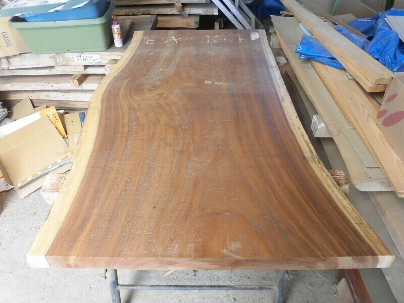 使いたいタイミングで条件に合致する板が必ずしもあるとは限らない・・・という点が難点といえば難点なのですが、N様邸にピッタリのモンキーポッドが入手出来たので、これを加工していくことにしました。