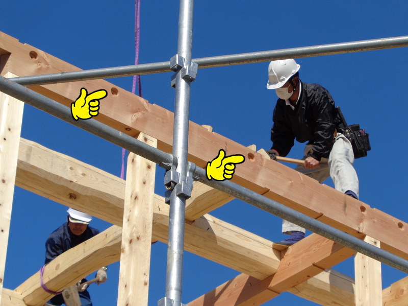 たとえば、梁の接合強度を高めるために取付けられるこちらの羽子板ボルトという金物は、ボルトの穴を通じて外と繋がっているところもあります。