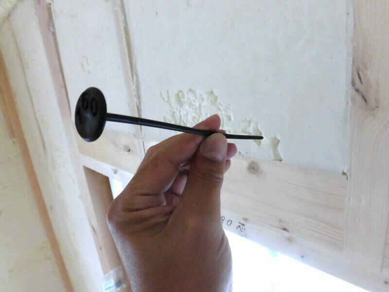 ちゃんと規定通りの厚みで施工されているかは、こんなピンを用いてチェックします。