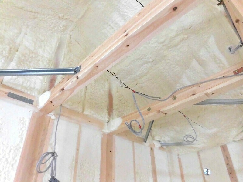 弊社では壁については90mm厚、小屋裏に関しては160mm厚にて吹付けるようにしています。