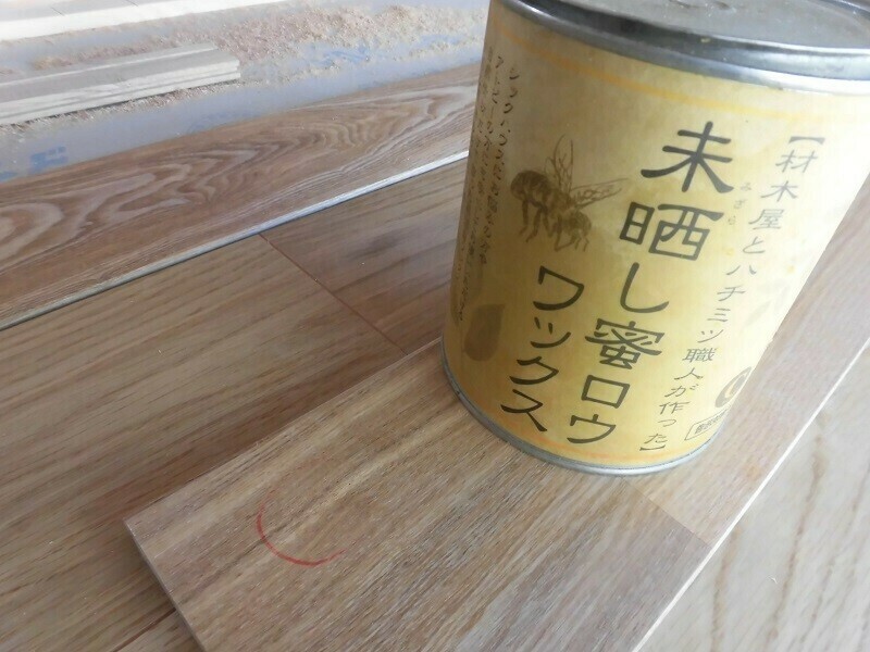 (我ながらなかなか大きな疵を付けたものですが、これは切れっ端にやったもので、張った床にはやっていませんからご安心を。)