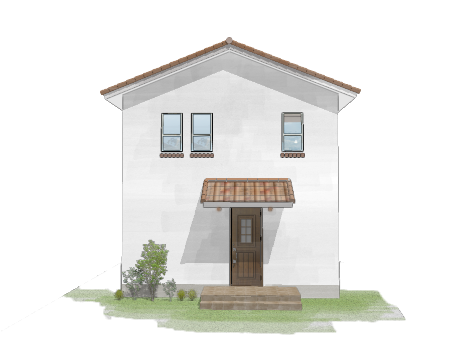レンガ色の三角屋根が特徴、可愛らしい南欧風のお家です。