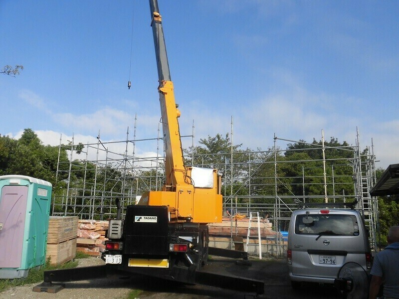 この日も6人の大工さんにレッカー屋さん、それにお手伝い要員として弊社から2人と・・・合計9人で作業を行いました。