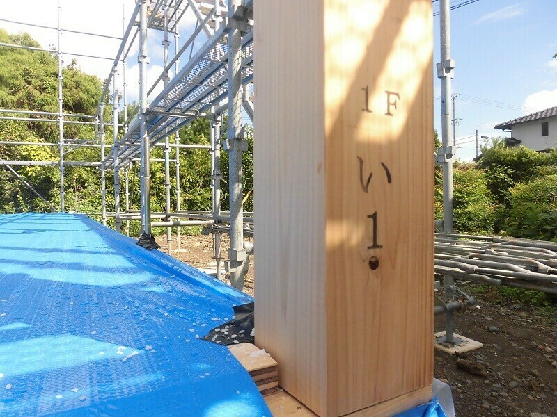 ・・・その日は柱を1本だけ立てて、建て方に着手したという形を取ることにして、その際、立てる柱はせっかくなので縁起の良さそうな『い1』を選びました。