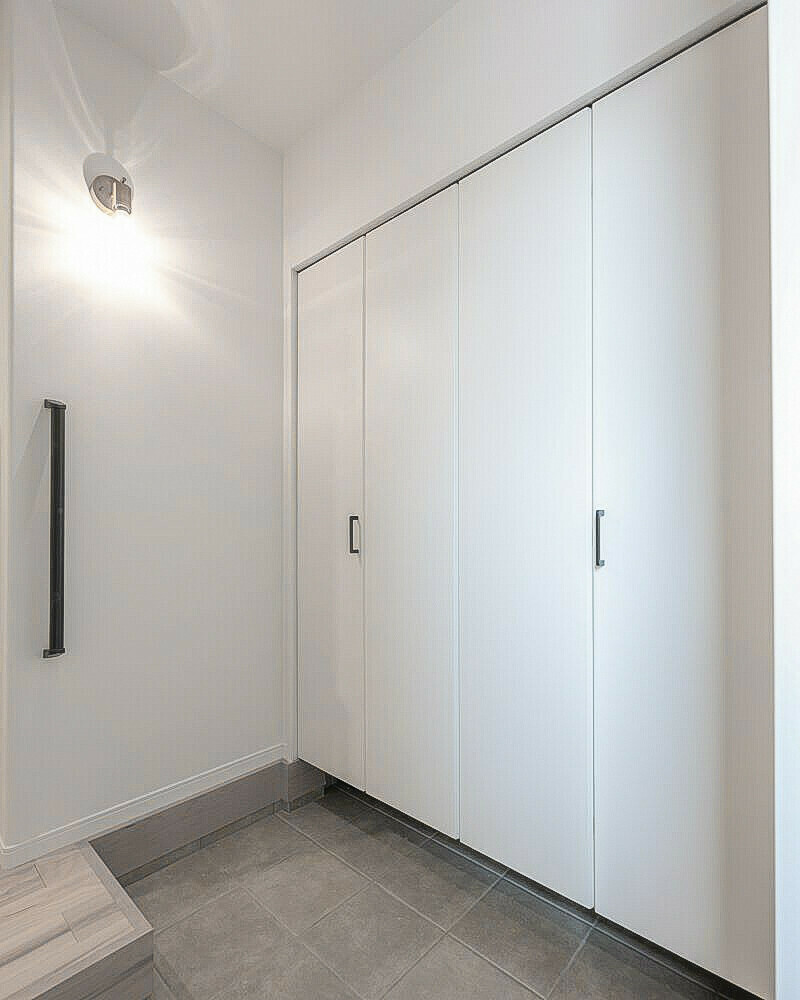 扉付きのシューズクローゼットと下駄箱、両方の組み合わせはとにかく片付けしやすいのでおすすめです。いつもすっきりとした玄関を保てるので家事や育児で毎日が忙しいご夫婦必見の玄関収納。新築を検討している方はぜひ参考にしてみてください。