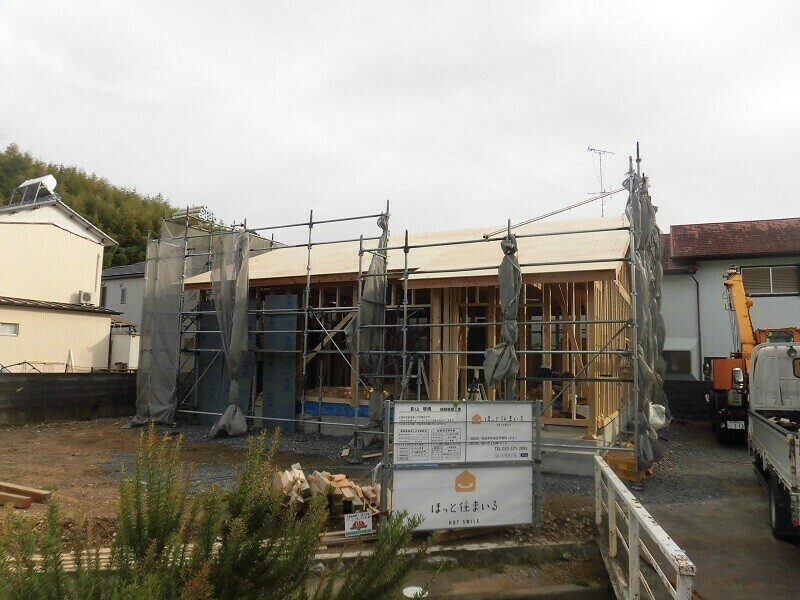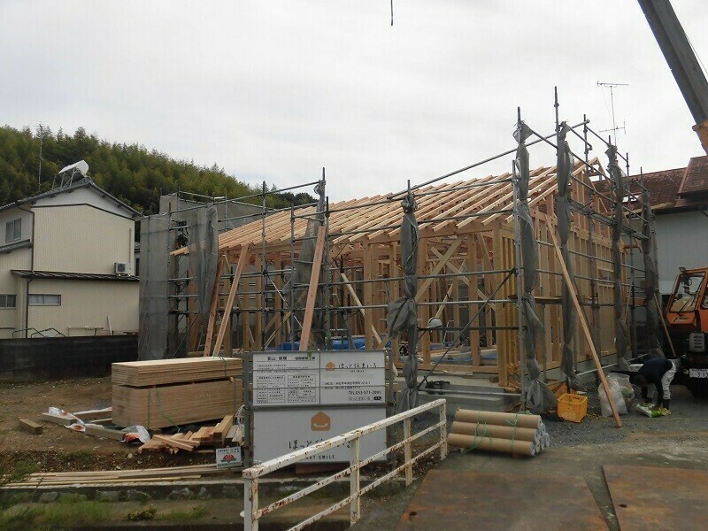先週のこと・・・浜松市中央区富塚町にてK様邸の上棟が行われました。