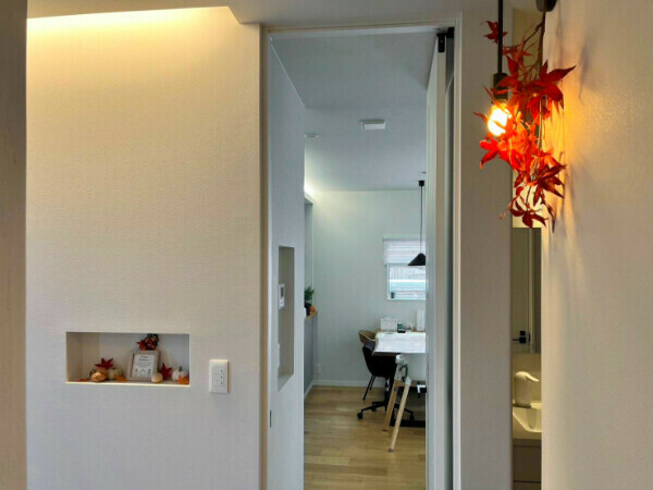 縦長ニッチよりも空間を横までめいっぱいに活用できるため、季節の飾り付けや小物置きにぴったりです。