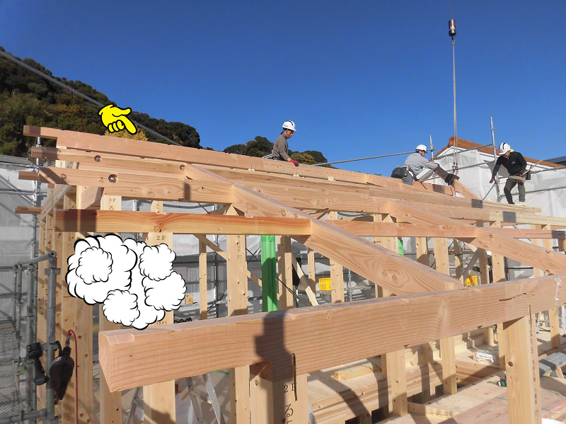 上棟という言葉からすると、棟木が上がった時点で目標達成のような印象を受けますが、棟木が上がったからといって、それで作業が終わるわけではありません。