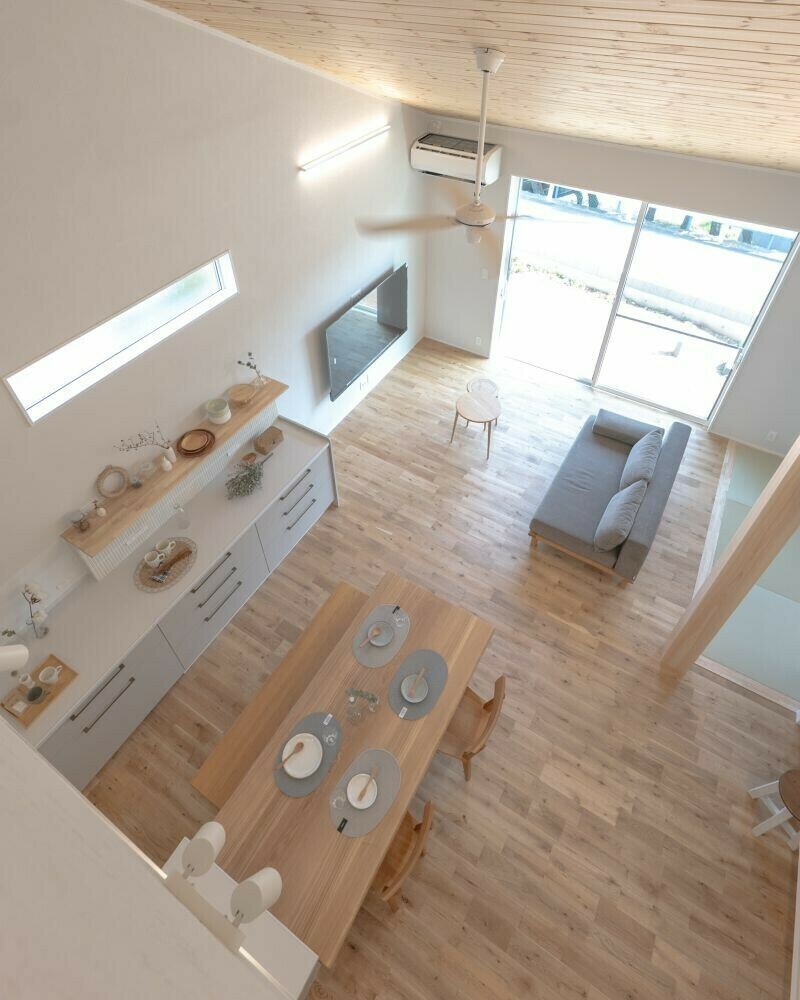 平屋のメリットである開放感や動線の良さを保ちながら、2階部分に収納やプライベート空間を確保できるため、コンパクトな土地でも平屋みたいなお家を建てられます。
