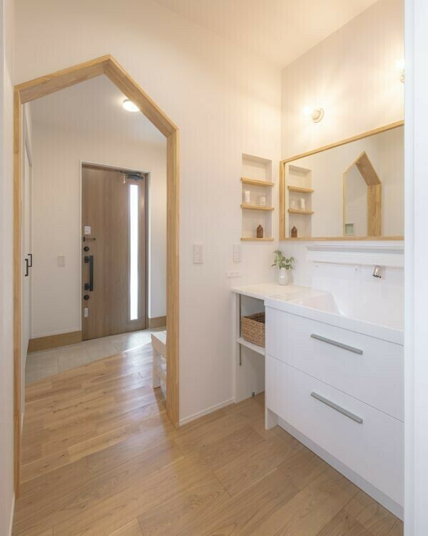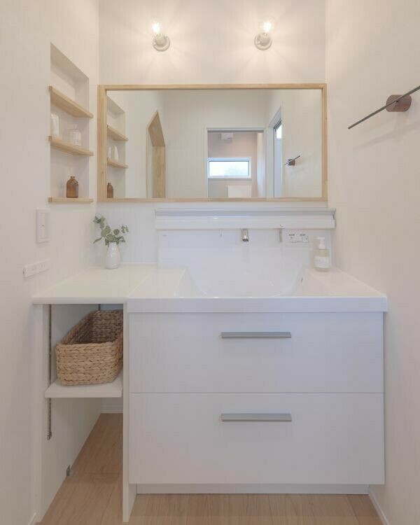 鏡とニッチを造作にした「半造作の洗面化粧台」