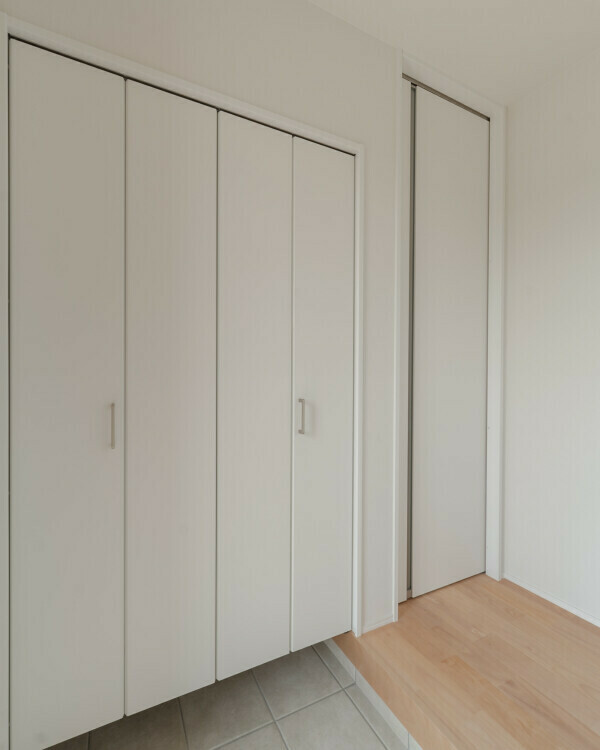 玄関クローゼットは中が見えないように扉付き。今は扉がある玄関クローゼットが主流になりつつあります。